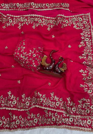 Faux Georgette with Intricate Thread & Sequence work With Pearl work Saree