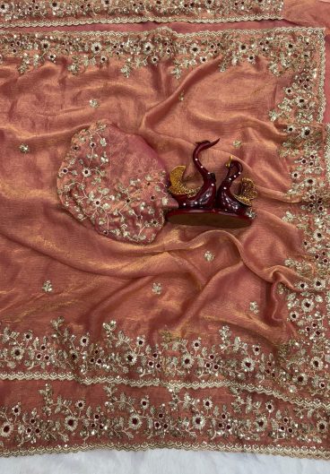 New Super Trending Embroidery Sequence work ready to wear Saree with full koti