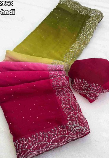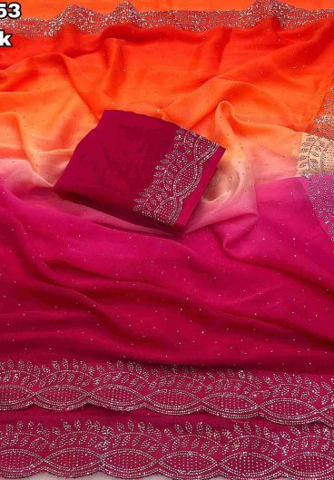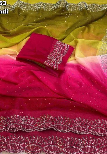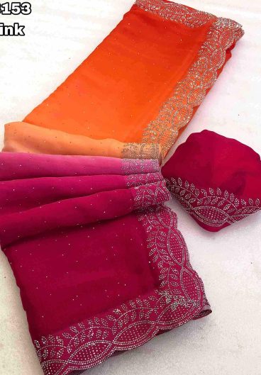 NEW SUPERHIT TRENDING READY TO WEAR SAREE WITH HAND WORK & EMBROIDERED STYLIST BLOUSE & ON FAUX GEORGETTE FABRIC