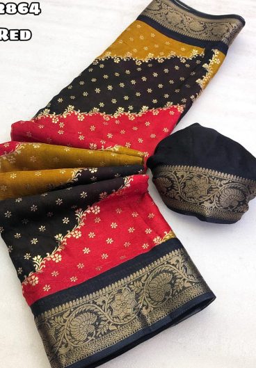 New Soft Dola Marsh Mellow Foil Printed Multi colour Saree With Jacquard weaving Border