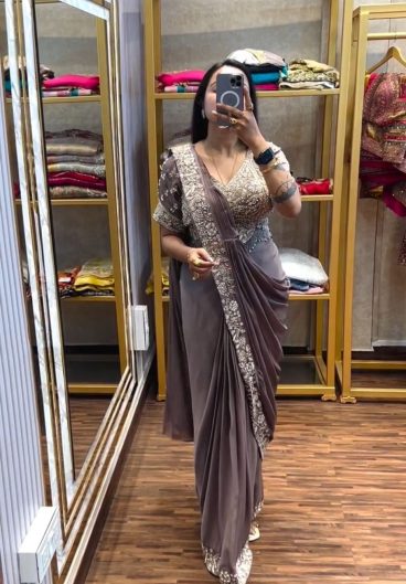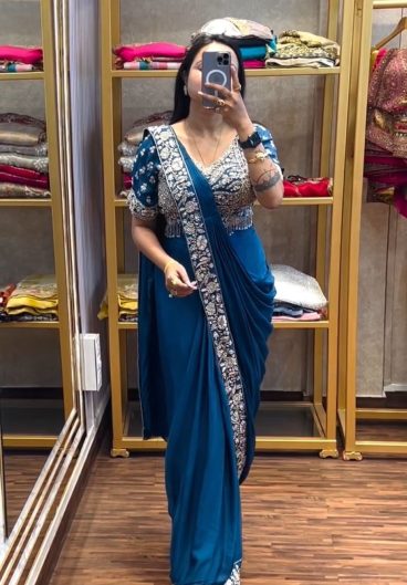New Super Trending Embroidery Sequence work ready to wear saree with Embroidery Blouse