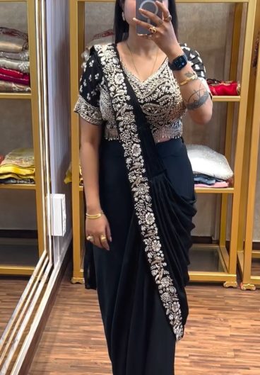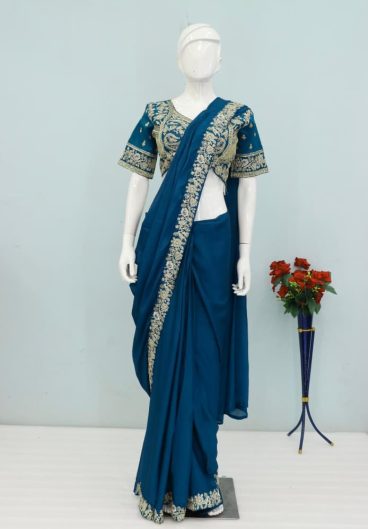 Heavy Crep Silk with Embroidery Sequence work premium ready-to-wear Saree