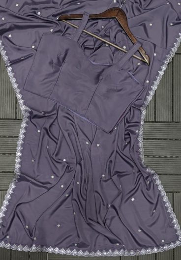 Fandy Satin Silk with Solid Plain with Design fancy Sequins Lace Border Saree