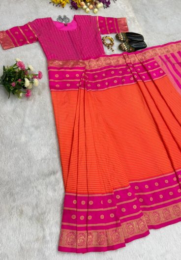 Beautiful Mysore Silk with Micro Cotton inner & Jequard work Zip Gown