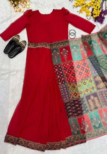 New Super Trending Embroidery cording work ready to wear saree with full koti
