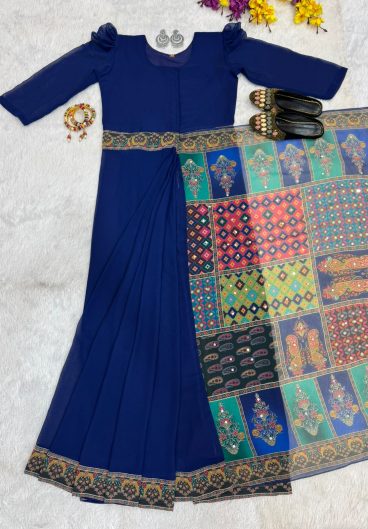 New Super Trending Embroidery Sequence work ready to wear saree with Embroidery Blouse