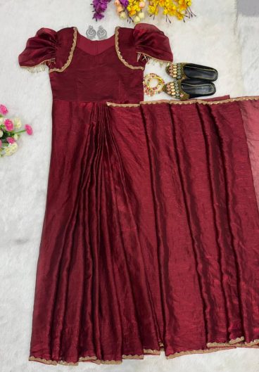 Heavy Crep Silk Ready to wear Beautiful Saree with Koti