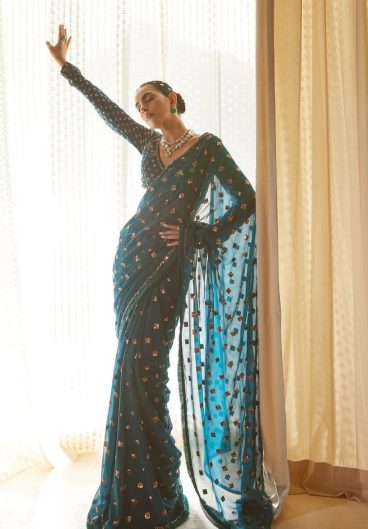 Heavy 5mm Sequence Embroidery box work Beautiful saree