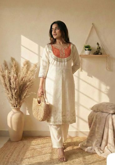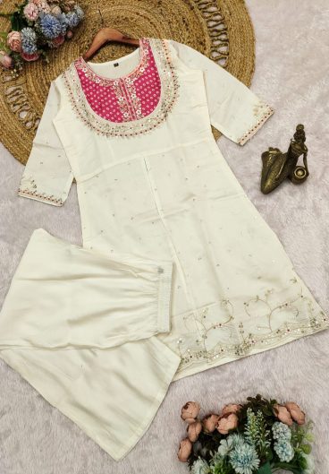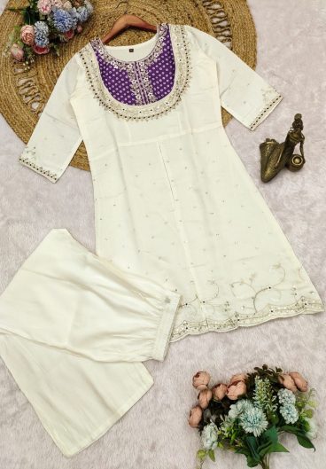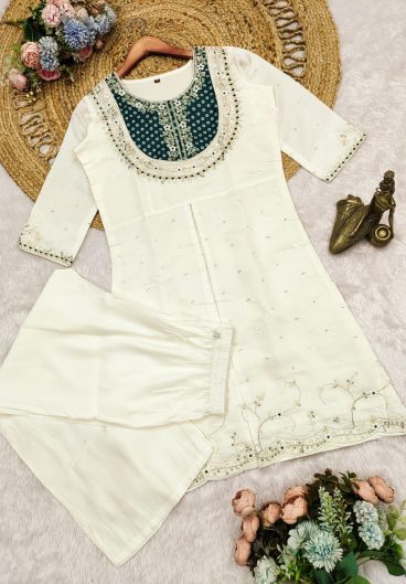 Luxurious Roman Silk with Elegant Embroidery Work Co-Ord Set