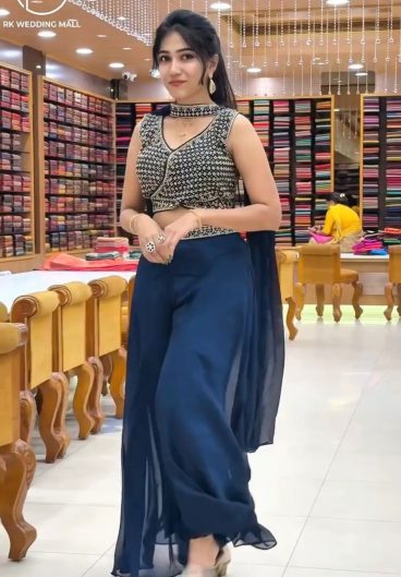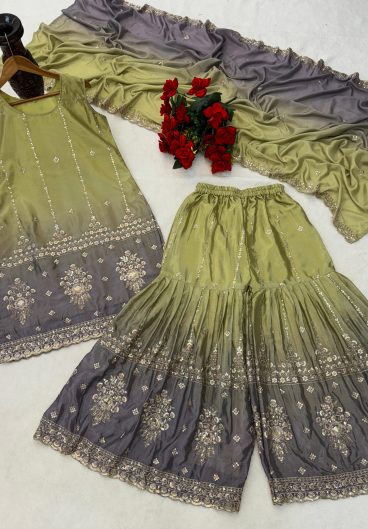 Premium Crep Silk with Embroidery Sequins With Real Mirror Work Blouse dhoti dupatta set