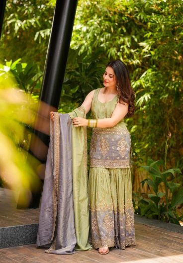 Elegant Palazzo Blouse and dupatta Set crafted from luxurious Tebby fabric