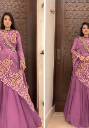 DESIGNER WEAR LAHENGA SAREE WITH LONG BLOUSE IN REAL MIRROR AND EMBROIDERY WORK