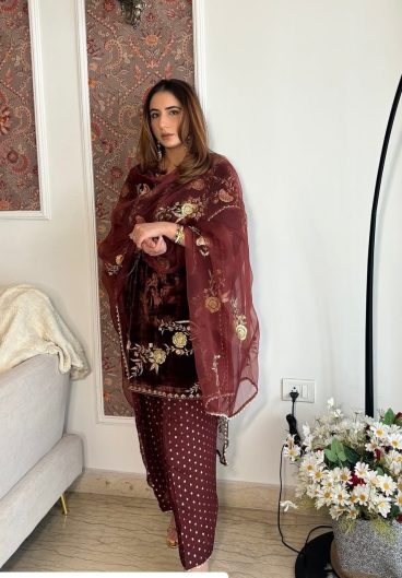 WINTER SEASON IN VELVET DESIGNER WEAR KURTA PLAZZO PAIR WITH EMBROIDERY WORK