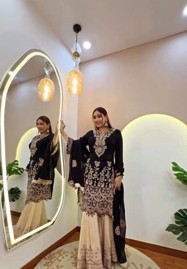 DESIGNER WEAR EXCLUSIVE BLACK EMBROIDERED TOP WITH PLAZZO PAIR