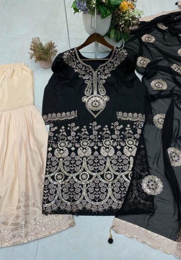 DESIGNER WEAR KURTA SARARA PAIR WITH DUPATTA IN SEQUENCE EMBROIDERY WORK
