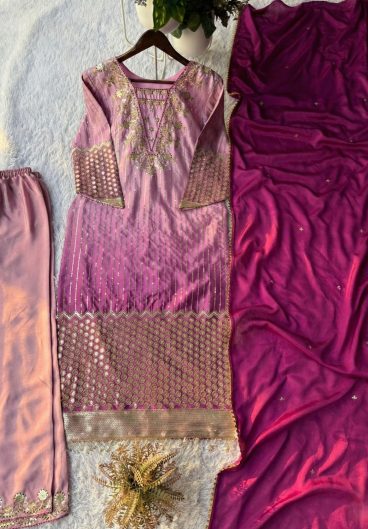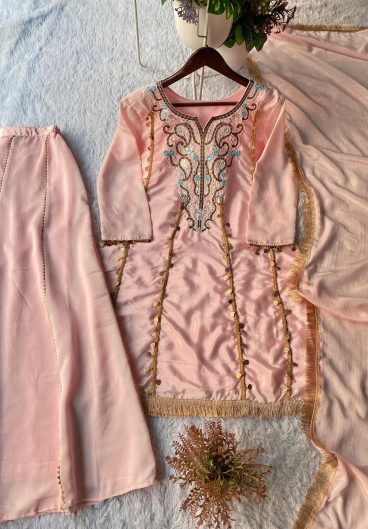 DESIGNER WEAR SEQUENCE EMBROIDERED TOP PLAZZO AND DUPATTA