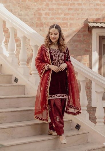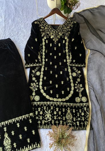 WINTER SEASON VELVET DESIGNER WEAR CO-ORD SET WITH EMBROIDERY WORK