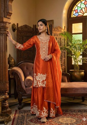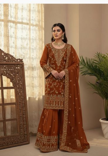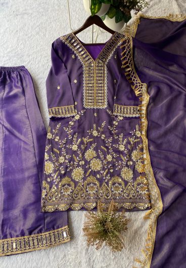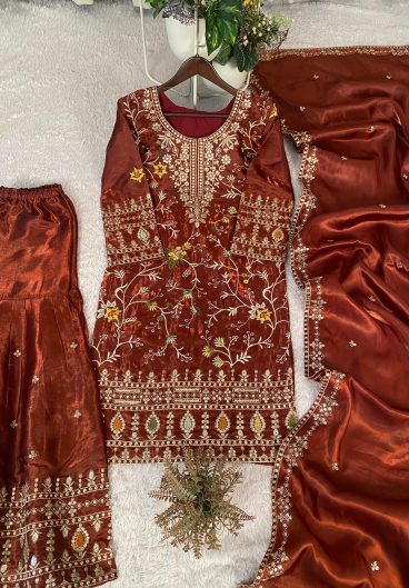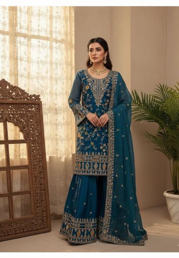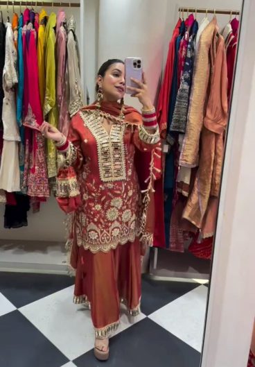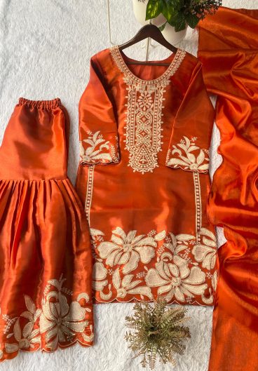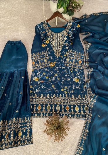 WEDDING SEASON 3 PIECE KURTI SARARA AND DUPATTA WITH SEQUENCE EMBROIDERY WORK