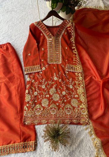 DESIGNER WEAR EMBROIDERED TOP PANT & DUPATTA