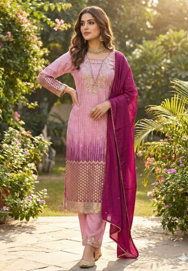 PARTY AND WEDDING DESIGNER WEAR SEQUENCE EMBROIDERED KURTA PLAZZO PAIR WITH DUPATTA