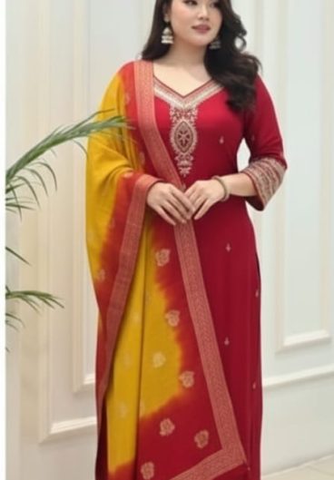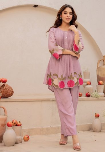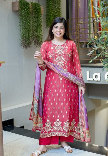 Pure berry silk with machine embroidery & hand embellishments on neckline and sleeves Salwar Kameez