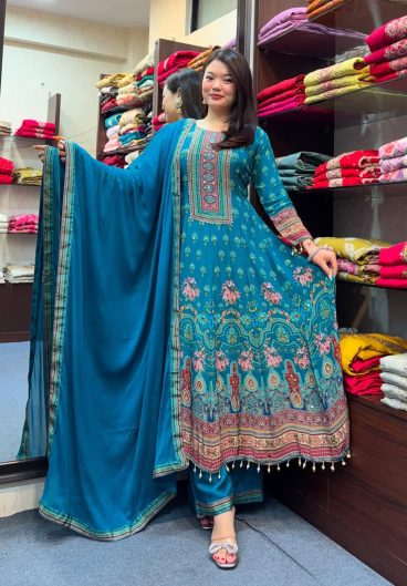 Pure Chinon with Full Beautiful chiffon Duppata border lace Salwar Kameez