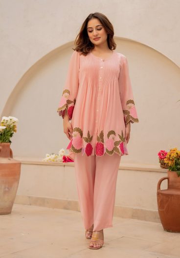 Premium Mul Chanderi With Embroidery Work CORD SET