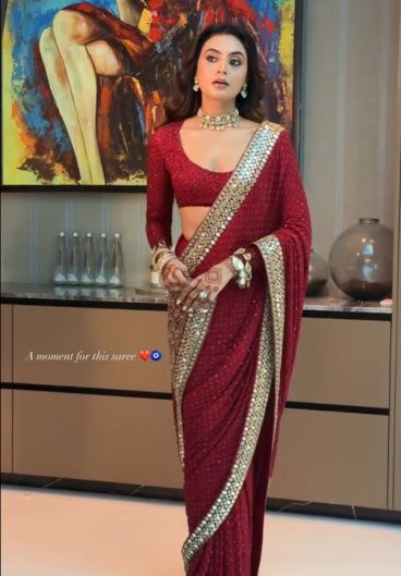 NEW BOLLYWOOD BLOCKBUSTER RED COLOUR ORINGNAL MIRROR WORK SAREE