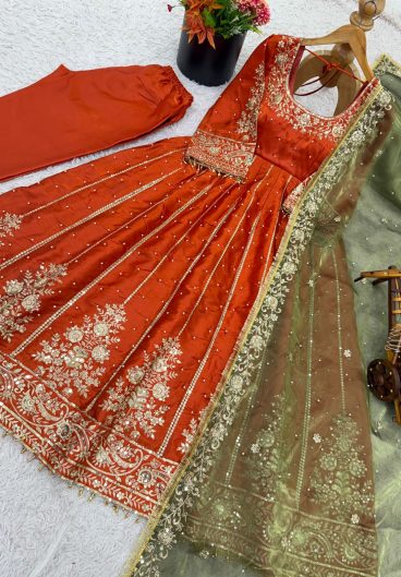 Anarkali Gown With GMY Silk With Fully Flair Embroidery Sequence Work