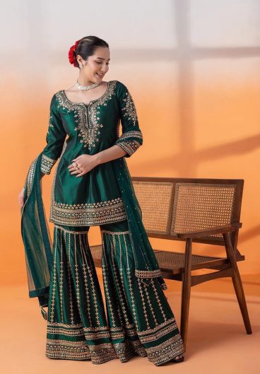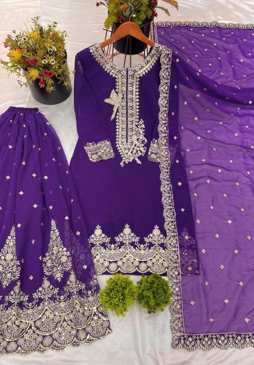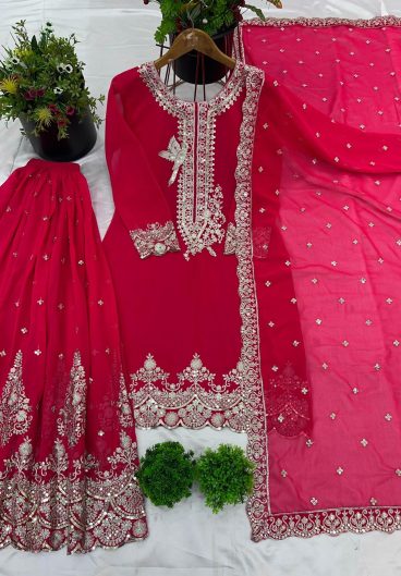 New heavy faux georgette With Heavy Embroidery Sequence Work Top-sharara And Dupatta Set