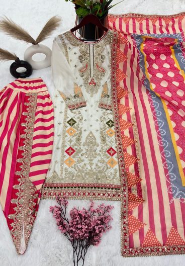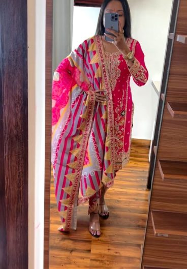 New GMY SILK With Heavy Embroidery Sequence Work Top-Bottom And Dupatta Set