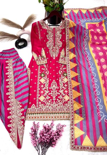 New Designer simar silk With Embroidery Work Top-Bottom And Dupatta Set