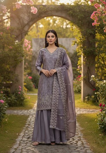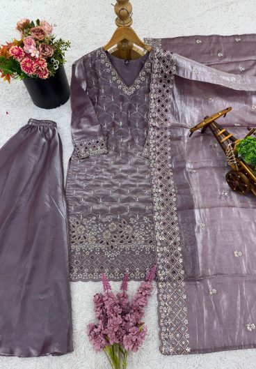 New Designer simar silk With Embroidery Work Top-Bottom And Dupatta Set