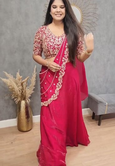 New Super Trending Embroidery Sequence work ready to wear Saree with full koti