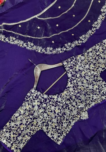 New Super Trending Embroidery Sequence work ready to wear saree with Embroidery Blouse