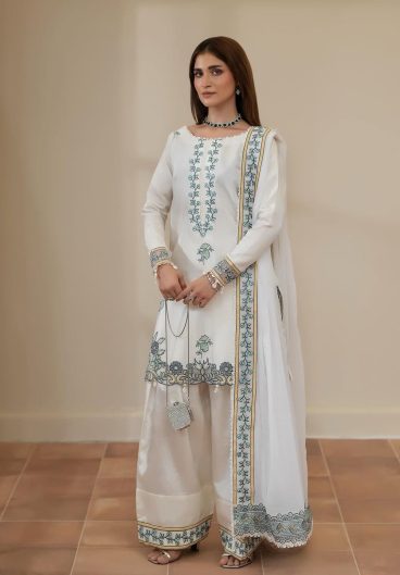 “New Premium Quality With Embroidery Sequence Worked Top-Sharara And Dupatta Set Fully Stitched” has been added to your cart.