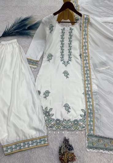 New Premium Quality With Embroidery Sequence Worked Top-Plazzo And Dupatta Set Fully Stitched