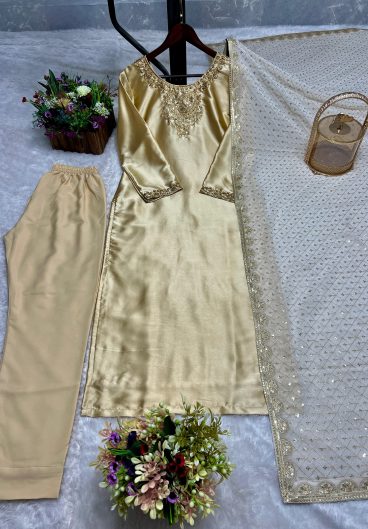 New Premium Embroidery And Sequence Worked Top-Bottom And Dupatta Set