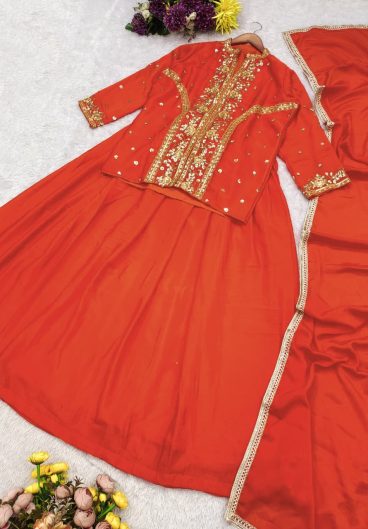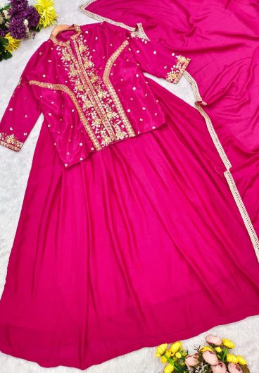Chinnon Silk Multi Thread Embroidery with Sequence Work Lehenga Top Dupatta Set