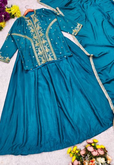 Beautiful Chinnon Silk with Multi-Thread Embroidery Sequence work Set