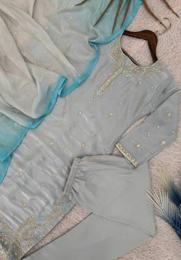 3 PIECE STYLISH TOP PLAZZO AND DUPATTA WITH BEAUTIFUL EMBROIDERY SEQUENCE WORK
