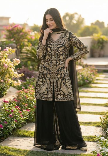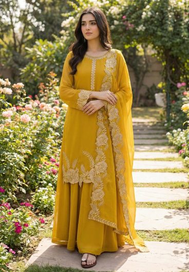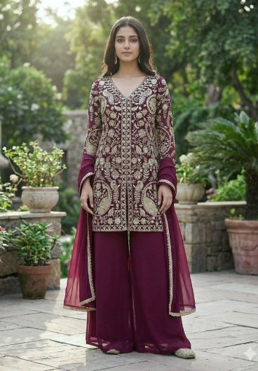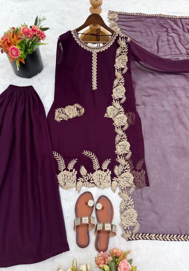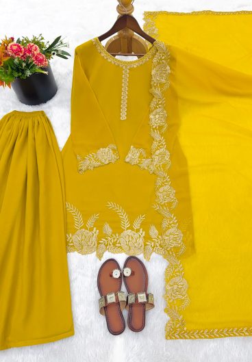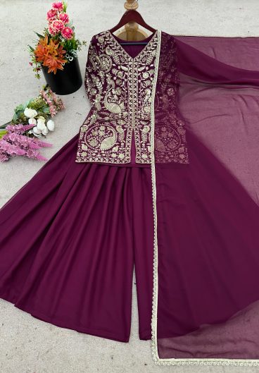Exclusive Elegant Embroidered Fully Stitched & Ready to Wear Top Plazzo with Dupatta Set