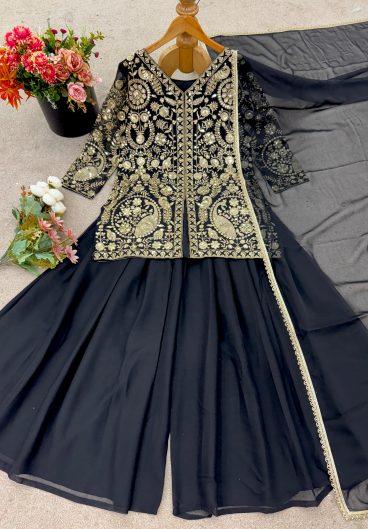 New Party Wear Look Pure Heavy Faux Georgette Top Plazzo & Dupatta Set