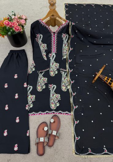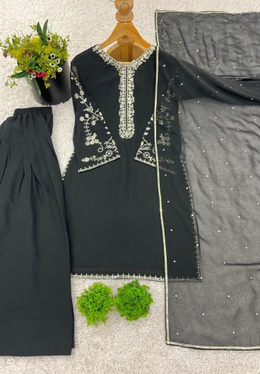 New Designer Pure Faux Georgette Top-Bottom And Dupatta Set Fully Stitched