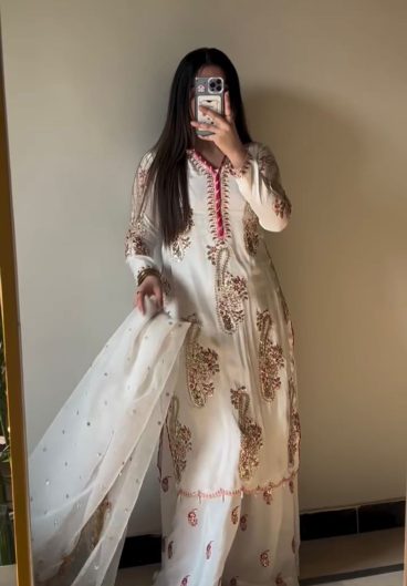 Exclusive Elegant Embroidered Top Plazzo with Dupatta Set