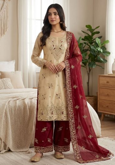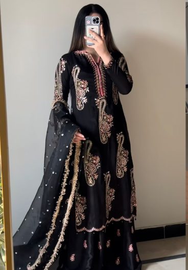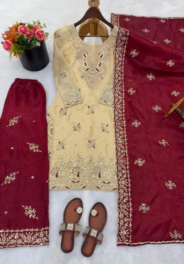 New Designer GMY SILK With Heavy Embroidery Sequence Work Top-Bottom And Dupatta Set