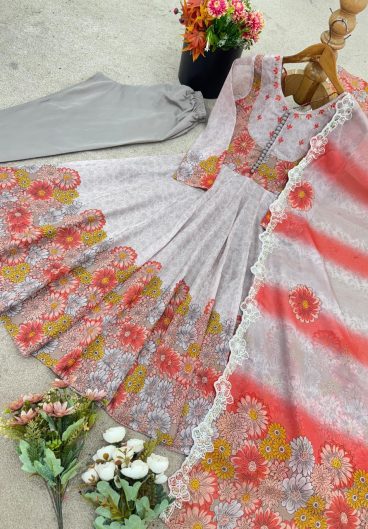 Tabby Organza With Embroidery Sequence Work With Digital Print With Fully Flair Salwar Kameez