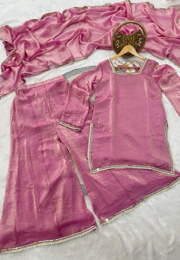 Fendi Satin with Designer Embellishment Mirror Work With Lace Border Salwar Kameez