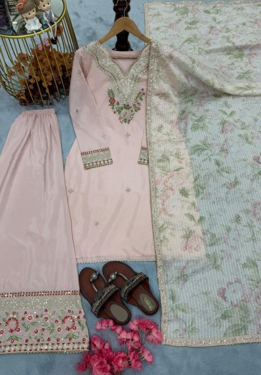 New Designer Party Wear Look Pur Chinon Silk Top & Palazzo With Dupatta set