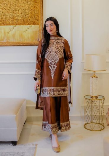 New Designer Party Wear Look Pur Gold Fendi Silk Top Bottom & Dupatta Set